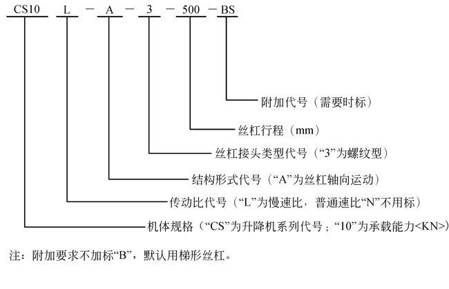CS絲桿升降機(jī)形式、規(guī)格的表示